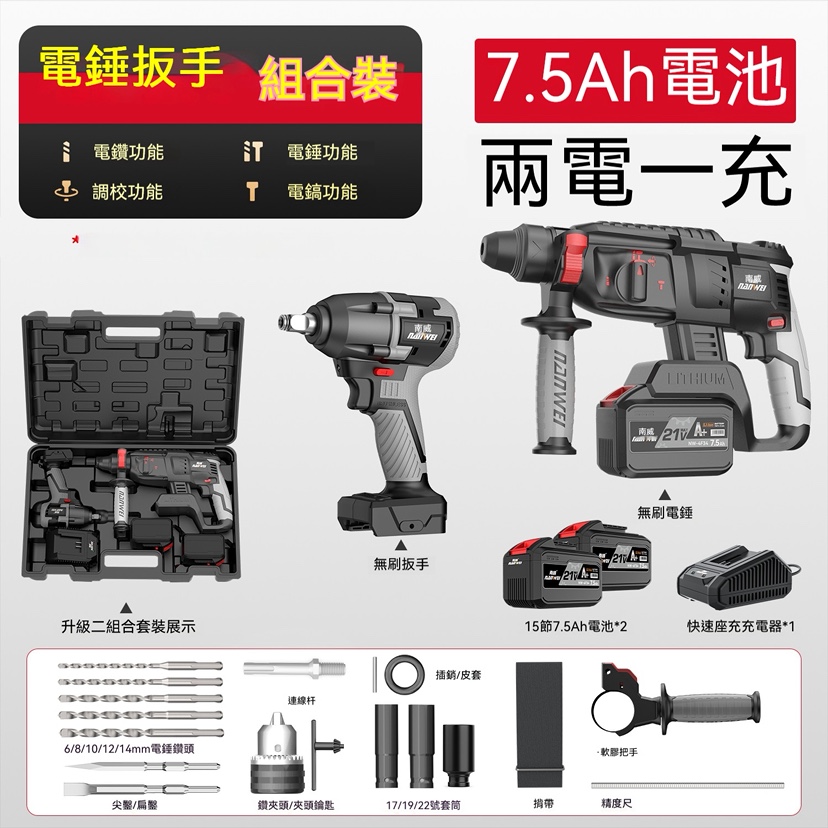 【⚡無刷電動三合一工具組|鑽牆・敲擊・雕刻一機搞定】 裝修免請師傅!台灣研發無刷馬達 一機抵三機,鑽牆、打擊、雕刻攏總會!