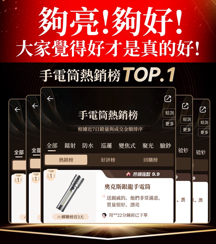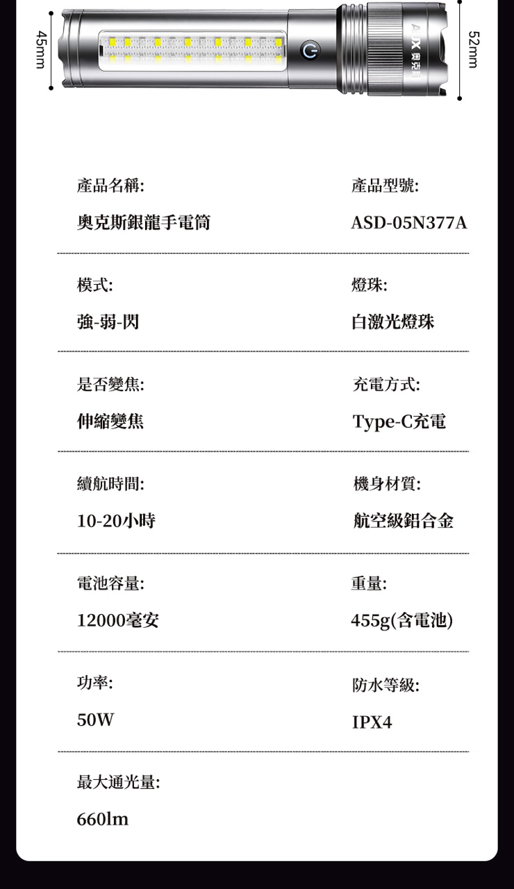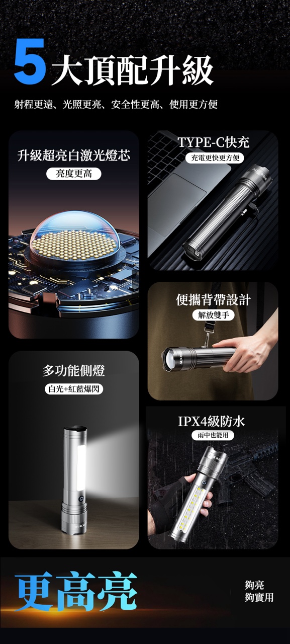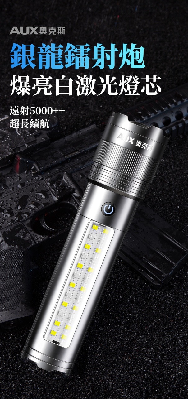 奧克斯✅「銀龍強光手電筒」✅超亮雷射戶外鐳射巡邏家用遠射長續航大功率,遠射5000++超長續航,全新6大升級,照明更亮!更耐用!